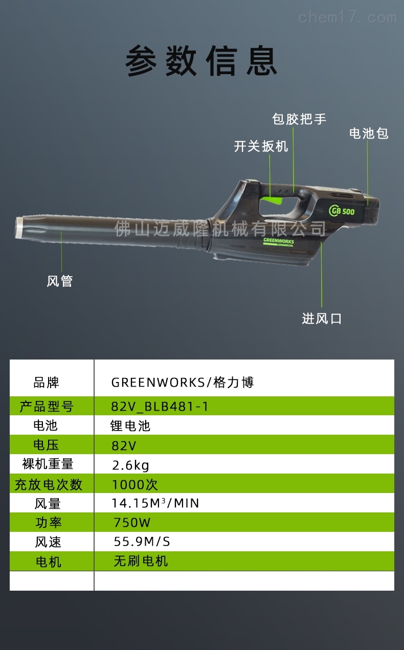 Glebe便携式吹风机blb481-1锂吹灰器82v吹雪器森林灭火器产品参数:品牌:greenworks/Glebe产品型号:82v_blb481-1电池:锂电池电压:82v裸机重量:2.6kg充放电次数:1000倍风量:14.15m3/min功率:750W风速:55.9m/s电机:无刷电机
