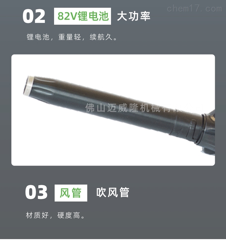 产品详细信息:一键启动/关闭吹风机,无需用力拉动辅助拉绳,操作更方便;82v锂电池:大功率,锂电池,重量轻,寿命长;风管:吹风管,材质好,硬度高。