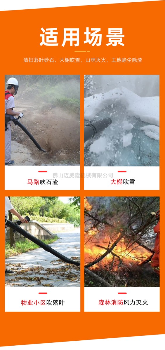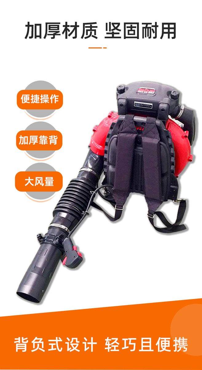 产品特点:二冲程发动机、背负式风力灭火器、扫叶、森林灭火、现场排渣、温室吹雪、风力灭火、道路清洁、环卫清洁。免费发票,一年保修,广泛适用,包括清扫落叶、沙子和砾石、温室吹雪、森林消防、建筑工地除尘和排渣。有效灭火距离可达1.97M。坐垫加厚,加宽加厚,舒适舒适。散热和通风可防止油温过高。多个散热孔使散热迅速。可拆卸风管吹管,性能稳定,适用性强,启动方便,风量大,风速高,质量可靠,油耗低,简单方便。